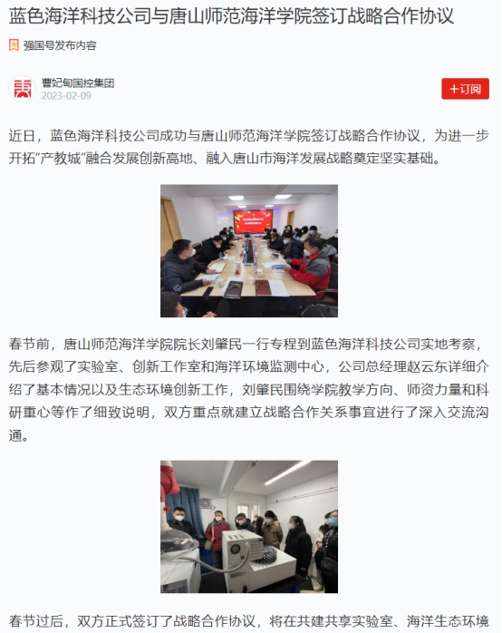 蓝色海洋科技公司与唐山师范bevictor伟德国际签订战略合作协议