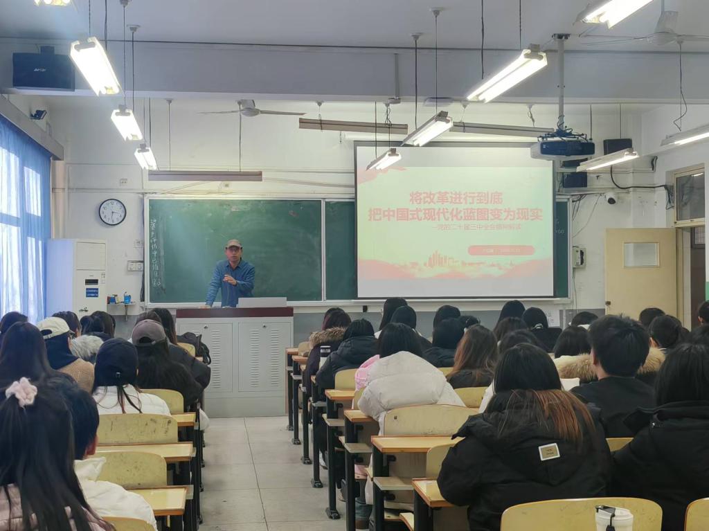 齐教授首先剖析了我国进一步全面深化改革、推进中国式现代化的时代背景与重大意义。他指出,在新时代背景下,全面深化改革是推动经济社会高质量发展的关键举措,而中国式现代化则是实现中华民族伟大复兴的必由之路。他综述了党的二十届三中全会的战略部署与重点内容,从多个角度深入解读了全会精神的核心要义和实践要求。最后,齐教授提出了一系列增强思想自觉与行动自觉的方法和建议,帮助在场的党员和积极分子更好地学习、领会、贯彻全会精神。他鼓励大家心明眼亮、惟实励新,为推进中国式现代化贡献自己的力量。