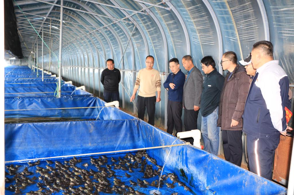 博士团一行考察山湾子乡热水汤村牛蛙养殖基地