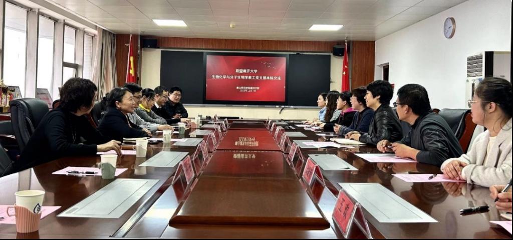 2025年11月7日,南开老员工命科学公司生物化学与分子生物学教工党支部在支部书记王淑芳教授的带领下,一行8人来到伟德国际唯一官网,与bevictor伟德国际教工党支部联合开展了一场以“党建引领坚定文化自信 共建互学促进能力”为主题的党日共建交流活动。此次活动旨在通过校际基层党组织的深度互动,探索党建工作与业务工作融合的新路径,共同增强党支部的凝聚力和战斗力,提高育人成效。