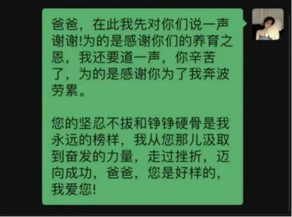 通过这次活动,同学们体会到了父母的爱馨香永驻。多希望光阴走得慢些再慢些,让我们可以多回几次家,多陪一会儿父母。也希望我们成长的脚步能一路生花,为他们抵挡岁月的风沙,将他们护在羽翼之下。